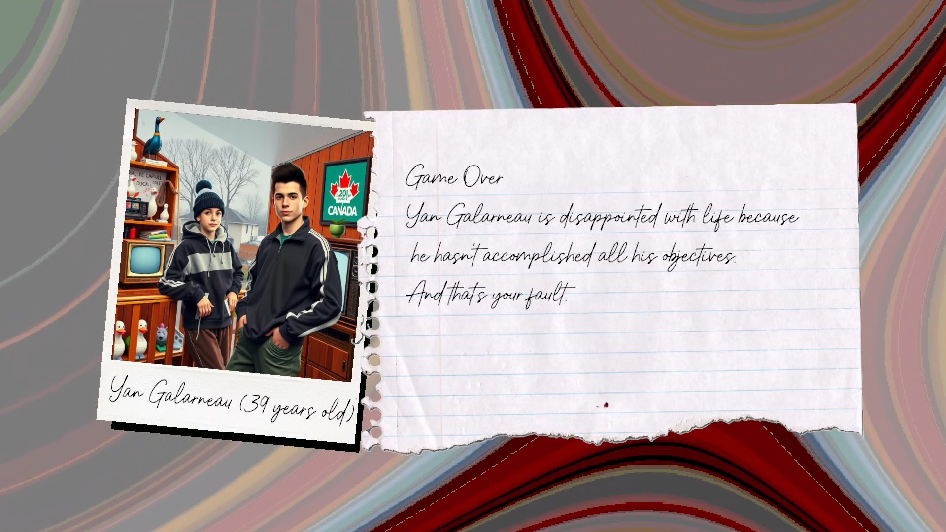 One of our goals is to explore the uncanny aesthetic of generative AI frontally, not trying to hide it away. The familiar and mundane scenes of a life sim make this even more obvious, often funny, often cringe, sometimes touching. At the same time we're trying to make the pipeline the least evil as can be, we're using small, fine-tuned self-hosted models, but hey there's still work to do.