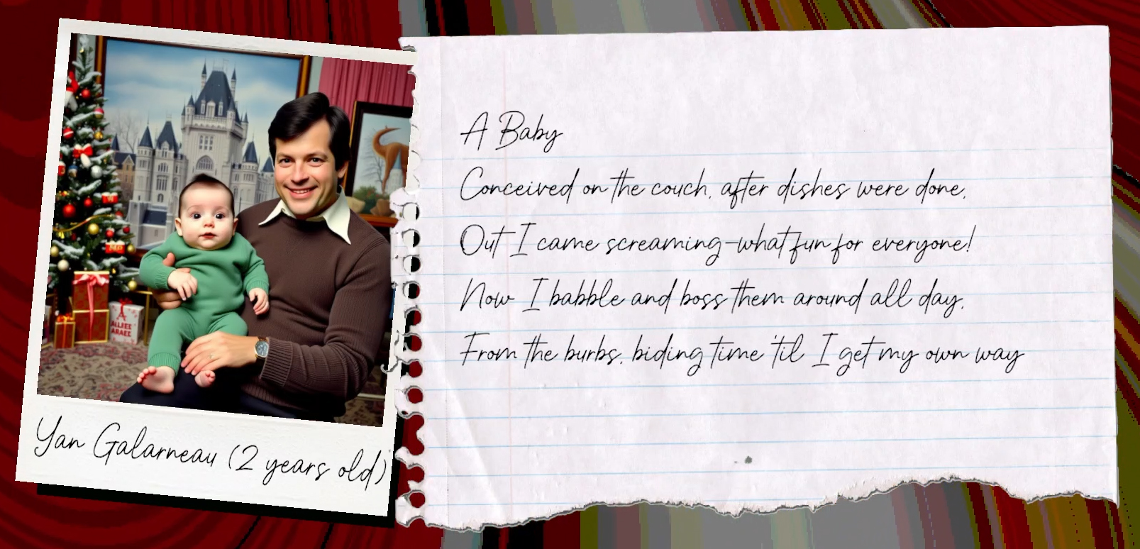 With each life stage you'll get a brand new, custom, probably weird family photo. See how your character bears the marks of your choices!